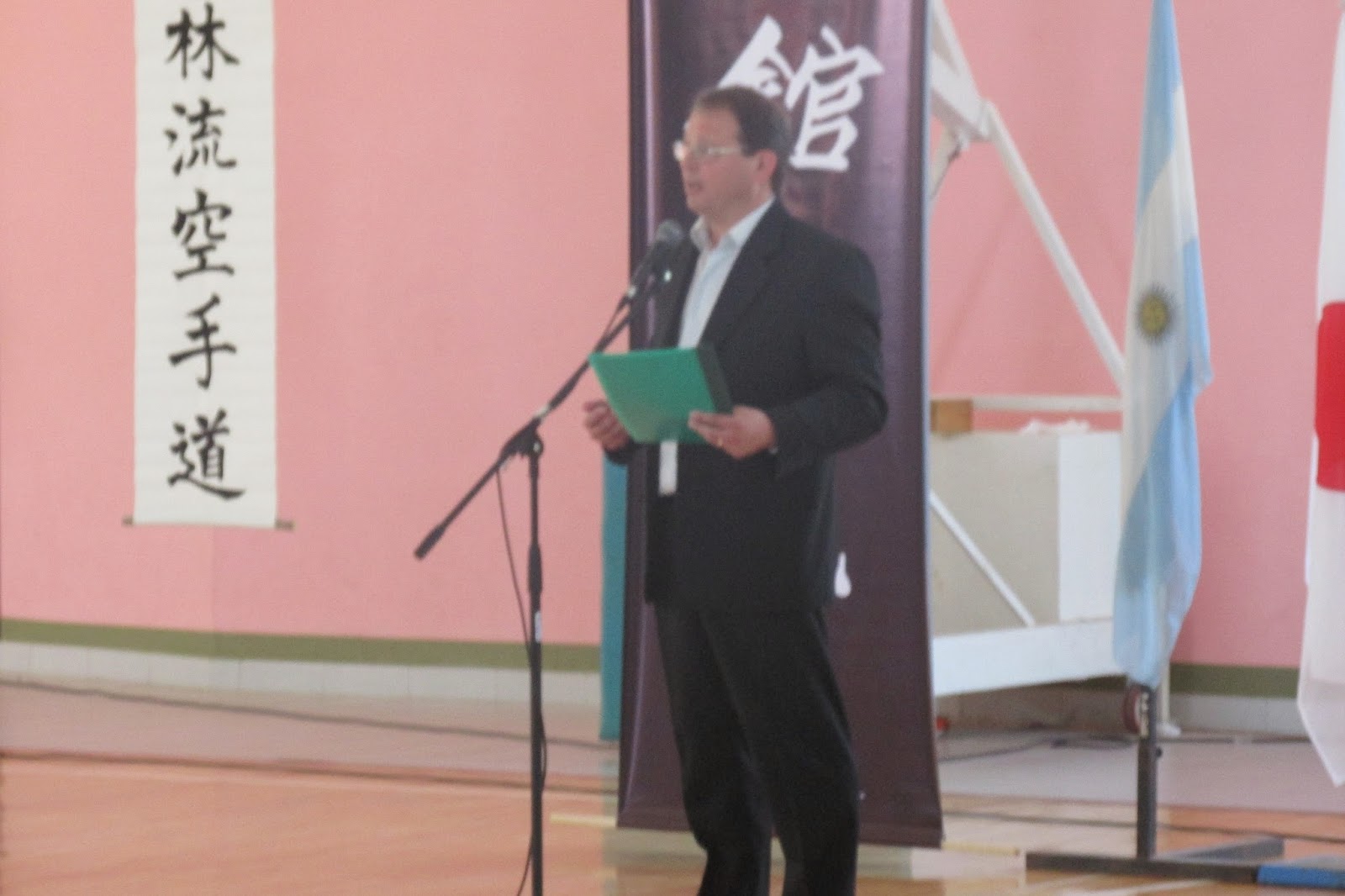 A las 10 y 45 horas en el Estadio de Gym Dorita Lucesoli se levó a cabo la ceremonia de apertura del Seminario de karate do, kobudo y único examen nacional para Danes de kobudo del año 2014.-